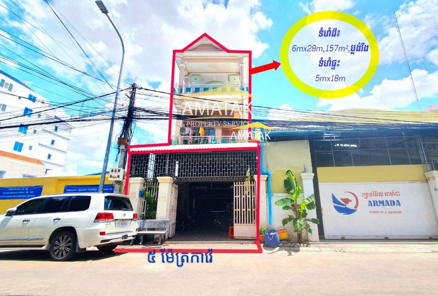 - Land Size: 6 m x 28 m