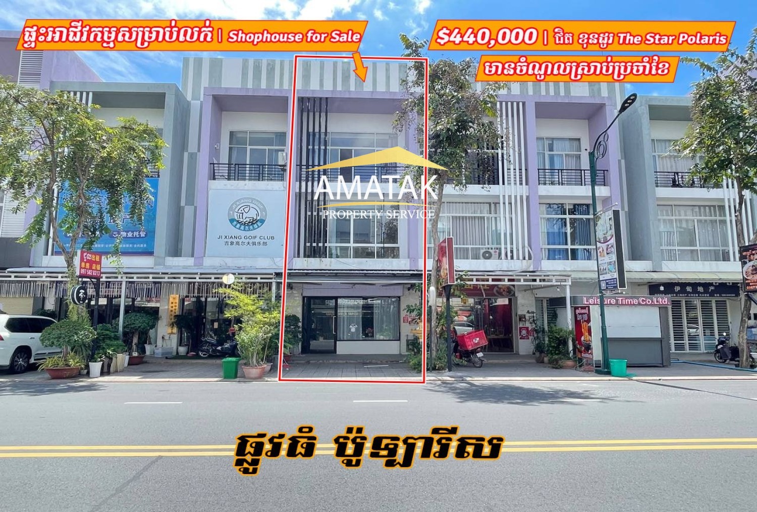 ផ្ទះអាជីរកម្មសម្រាប់លក់/ Shophouse for Sale តម្លៃ ៖ $440,000 • មានចំណូលប្រចាំខែស្រាប់ • ទំហំដី ៖ 5ម x 26ម (ប្លង់រឹង) • ទំហំផ្ទះ៖ 5ម x 16ម (សល់មុខផ្ទះ 8ម ក្រោយ 2ម) • បន្ទប់គេងសរុប 4 និងបន្ទប់ទឹក 5 • បន្ទប់ទទួលភ្ញៀវ ធំទូលាយ • មានចង្ក្រានបាយ • ស្ថិតនៅលើផ្លូវធំ ប៉ូឡារីស (St, Polaris) • ទីតាំង៖ បុរី ប៉េងហួត បឹងស្នោរ ជិត ខុនដូរ The Star Polaris 👍 ល្អ សម្រាប់ប្រកបអាជីវកម្មគ្រប់ប្រភេទ ដូចជា ហាងលក់ទំនិញ-អាហារដ្ឋាន ឬ បើកជាការិយាល័យ ធ្វើការ —-------------------------------------------- ទំនាក់ទំនង ៖ 077975995 / 086601472 (Telegram) ស្វែងរកជម្រើសផ្សេងទៀត Telegram Channel —> https://t.me/amatakproperty Website: www.amatakpropertyservice.com ភ្នាក់ងារអចលនវត្ថុ៖ ប៉ោ តុលា លេខអាជ្ញាប័ណ្ណក្រុមហ៊ុន៖ E-15-197