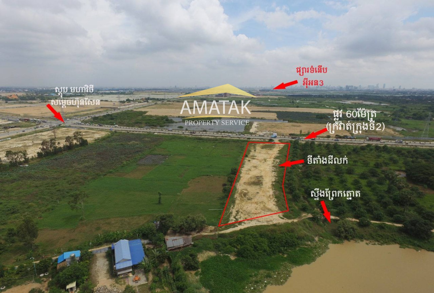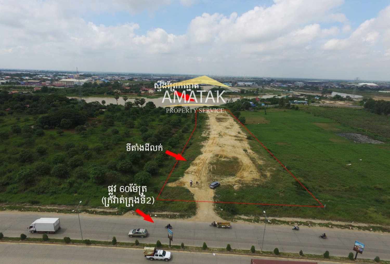 ⁃ Location: Stand on Main road (60m) right hand side from Phnom Penh