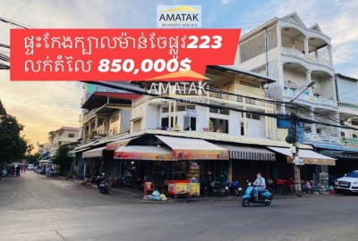 [ផ្ទះកែងលក់ - 𝐅𝐎𝐑 𝐒𝐀𝐋𝐄 ] តម្លៃ /Price : 𝐔𝐒𝐃 850,000 ចចារ ប្លង់រឹង ទីតាំងផ្ទះលេីផ្លូវ 223 សង្កាត់ផ្សាដើមគរ ខណ្ឌទួលគោក -ទំហំដី : 14ម x 11.5ម សរុប 117 ម៉ែត្រការ៉េ -ទំហំផ្ទះ : 14ម x 10.5ម កំពស់ 2ជាន់កន្លះ 👉ទីតាំងល្អអាចបេីកអាជីវកម្មផ្សេងៗ, តំបន